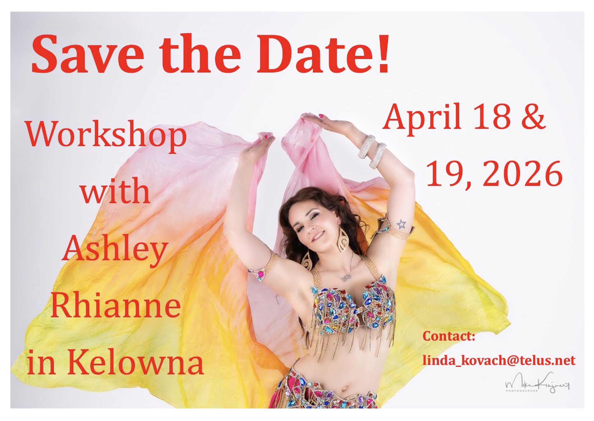 Ashley Rhianne will be back in Kelowna for a series of workshops April 18 & 19 2026 hosted by Linda Kovach. Saturday: 10:00 - 12:00 pm Oriental Technique: A wonderful way to start the morning - with oriental technique and combos! This workshop will be framed around technique related to the afternoon choreography and will...